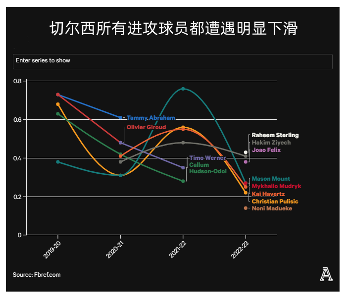 另外,团队的环境也很重要。不可忽视的一点是,在过去的四年里,切尔西所有的攻击球员都遭受了明显的滑坡。