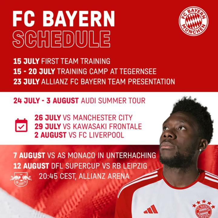 拜仁未来一个月训练比赛时间表