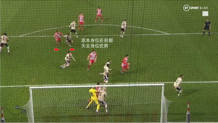 但是被对方球员抗开后,完全失去了身位优势,最终又是目送对方头球破门。