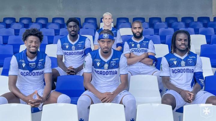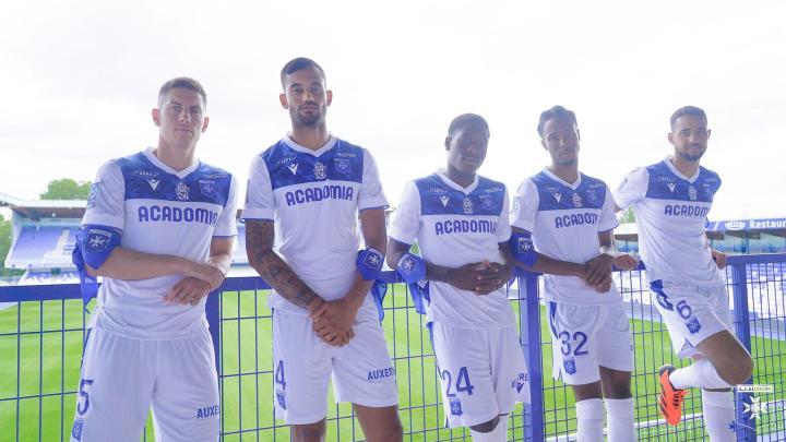 新球衣配套了白色短裤,短裤侧面同样印有深蓝色几何形图案,与上衣相互辉映。右侧印有新设计的球员个人号码,欧塞尔的队徽则在号码正下方。球袜同样为白色,正前面是蓝色的马耳他十字,下面是Macron的logo,后面则写着“AJA”。