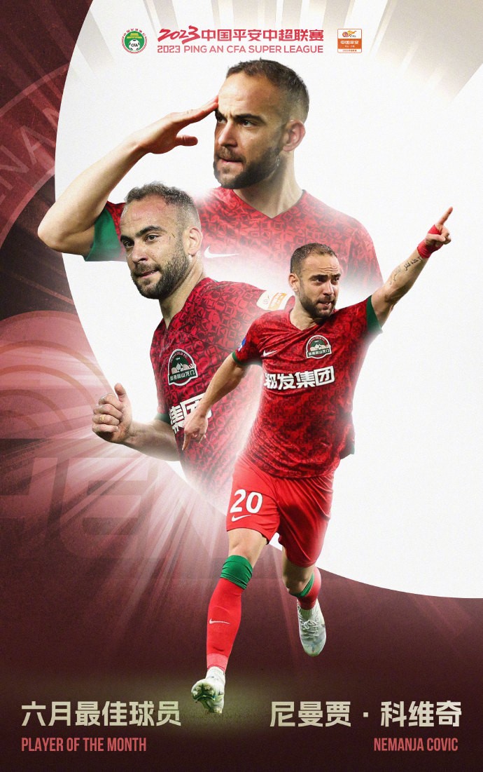 中超联赛官方宣布,河南队前锋科维奇当选为六月最佳球员。