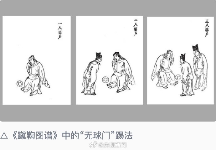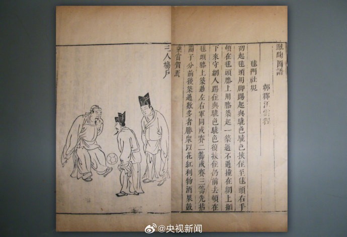 央视新闻官博介绍了古代的足球专业书籍《蹴鞠图谱》,其中也包括有女子蹴鞠运动的介绍,记录了踢法、礼仪、行话等。