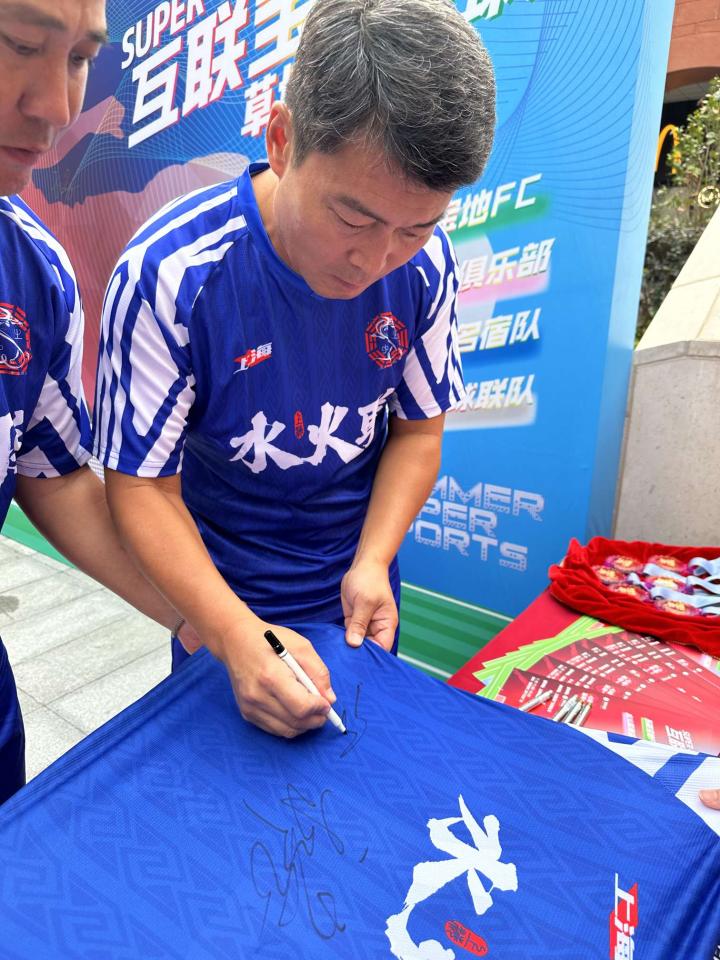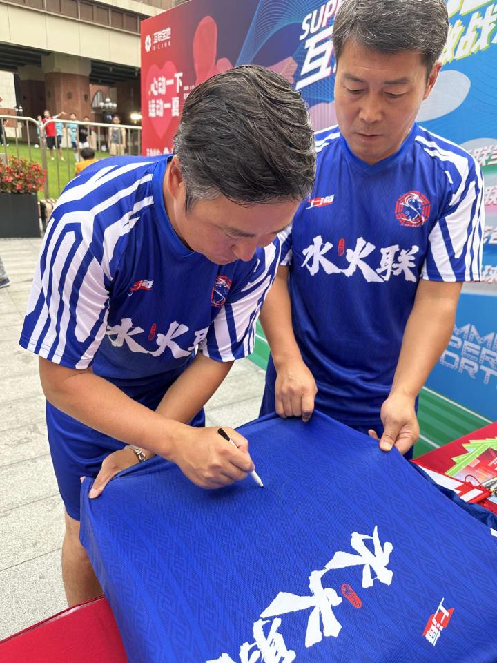 今天下午,前国脚申思和祁宏参加某业余足球赛事并为球迷签名