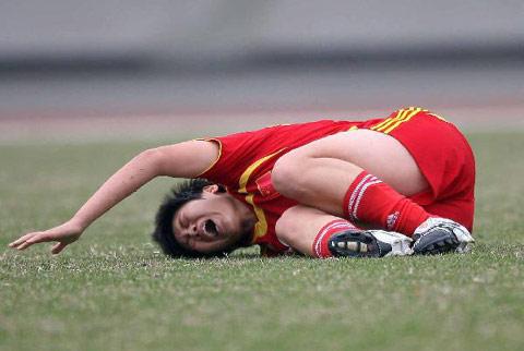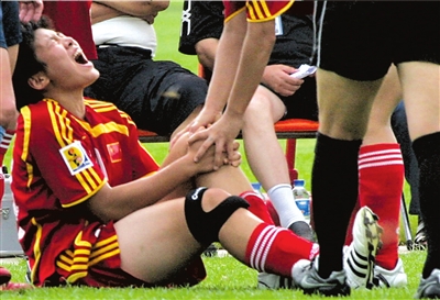 2007年12月,在和新西兰的一场热身赛中,马晓旭在一次争抢皮球时忽然摔倒在地。赛后,她的诊断结果让所有人都大吃一惊——右脚十字韧带撕裂。