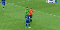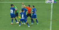 上半场补时第3分钟,何超开定位球踢到阿代米腿上,裁判出示黄牌。