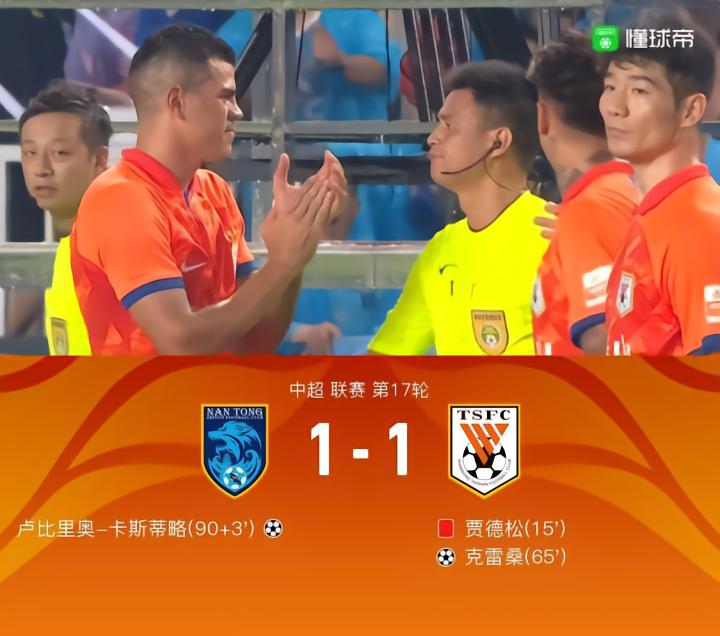 【十人山东1-1南通,卡斯蒂略绝平,克雷桑破门,贾德松直红】