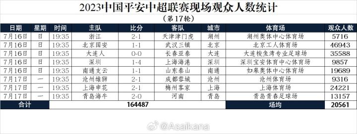 中超第17轮现场观众人数