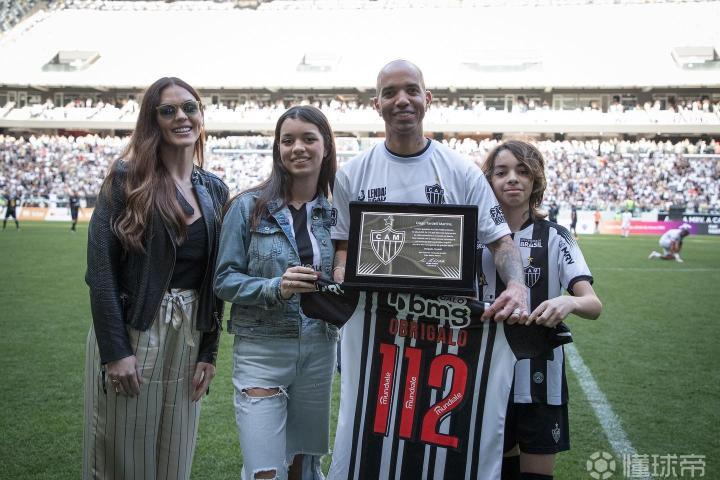 前中超外援塔尔德利是米内罗竞技的传奇球员,他三度效力该队,为球队打进了112个进球。在现场,塔尔德利和家人一起领取了属于自己的纪念球衣。