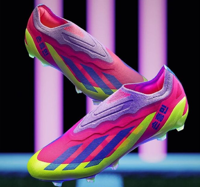 18日,阿迪达斯为孙兴慜推出了专属签名鞋HMS PACK,球鞋选用孙兴慜惯用的阿迪达斯X系列无鞋带战靴为基础,升级后辅以荧光黄、玫红、蓝、紫色进行配色,配色灵感来源于韩国首尔绚丽多彩的灯光以及热闹繁华的夜生活。