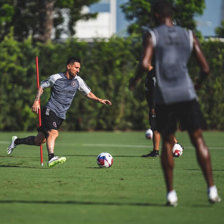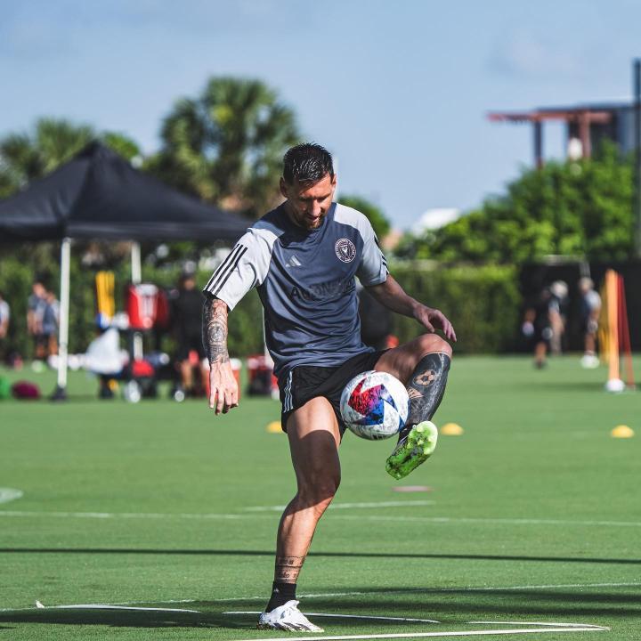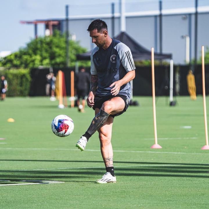 梅西晒首次参加迈阿密国际训练课照片:回归足球。