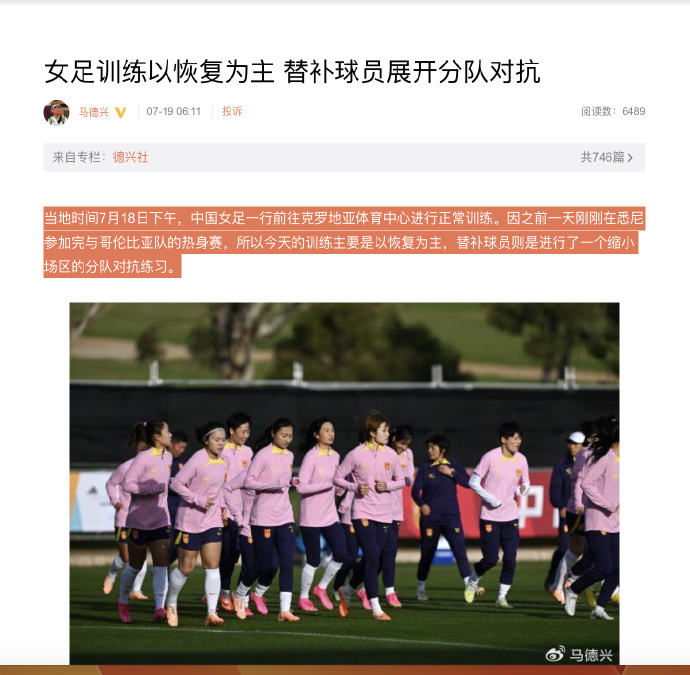 中国女足今日以恢复为主,替补球员进行分组对抗根据...咪咕体育 @懂球帝2023-07-19 10:03中国女足今日以恢复为主,替补球员进行分组对抗 根据媒体人马德兴消息: “当地时间7月18日下午,中国女足一行前往克罗地亚体育中心进行正常训练。因之前一天刚刚在悉尼参加完与哥伦比亚队的热身赛,所以今天的训练主要是以恢复为主,替补球员则是进行了一个缩小场区的分队对抗练习。”展开更多