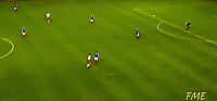 在我们绕过球之后,最后一次触球是远离后卫,进入空间,绕过球之后的触球不能是向前的,这样会撞到后卫,他们会把球从我们脚下抢走。