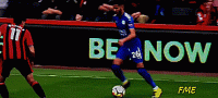 但是如果我们从球前绕过,后卫可能会认为,我们可能触球带向这个方向或者用脚外侧传球给其他队员。