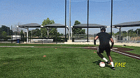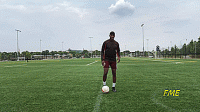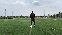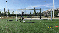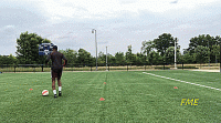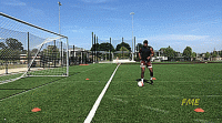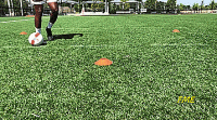 如果我们是初学者,当我们接近标志盘时放慢速度,以确保技术正确。在这个训练中,我们重点注意的是绕过球之后的第一次触球。