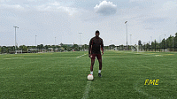 最后,当我们做踩单车动作时,我们要跨步从球前绕过,而不是从球上绕过,因为如果我们从球上越过球,后卫不会认为我们在做什么,也不会让后卫失去平衡。