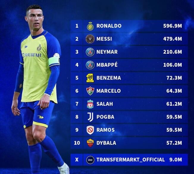 1.C罗(利雅得胜利,5.96亿)