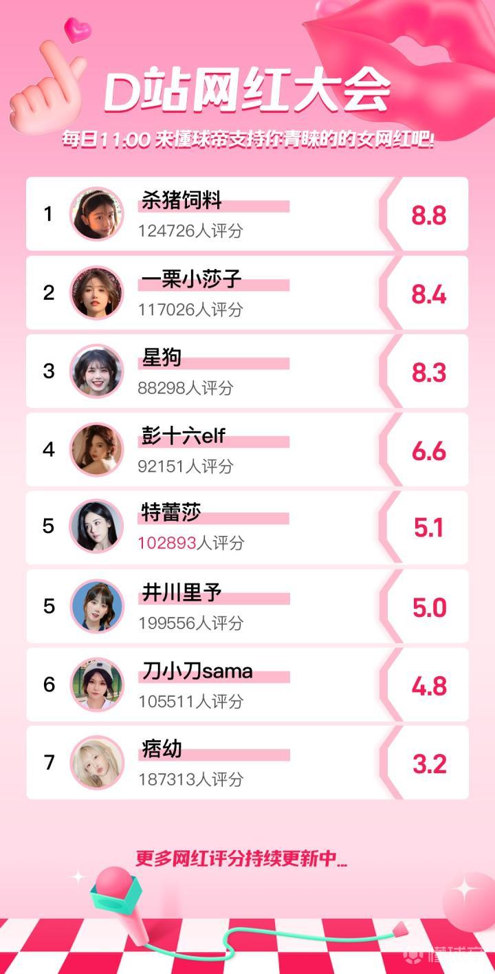 当前我懂老哥对各大网红们的喜爱值如下,谁最让你意外?
