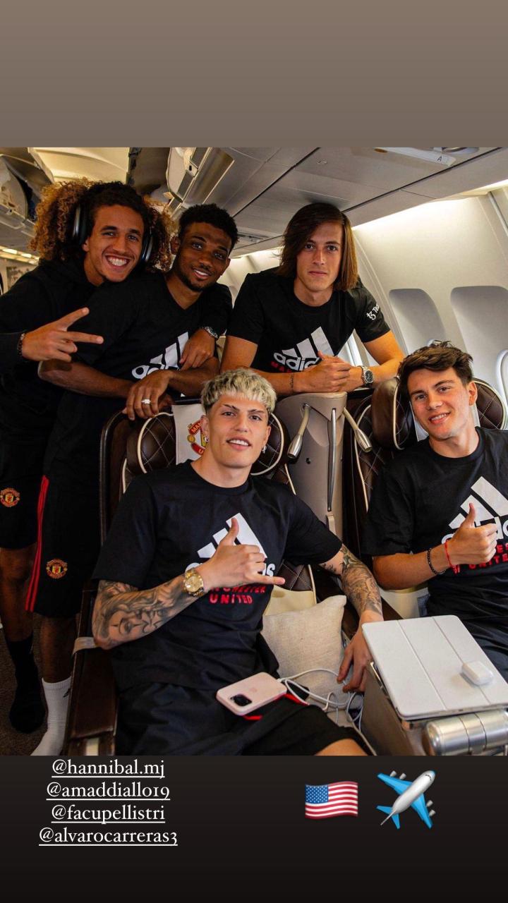 红小鬼们!加纳乔晒美国行照片,和汉尼拔、阿马德、A费、佩利斯特里5人同框。