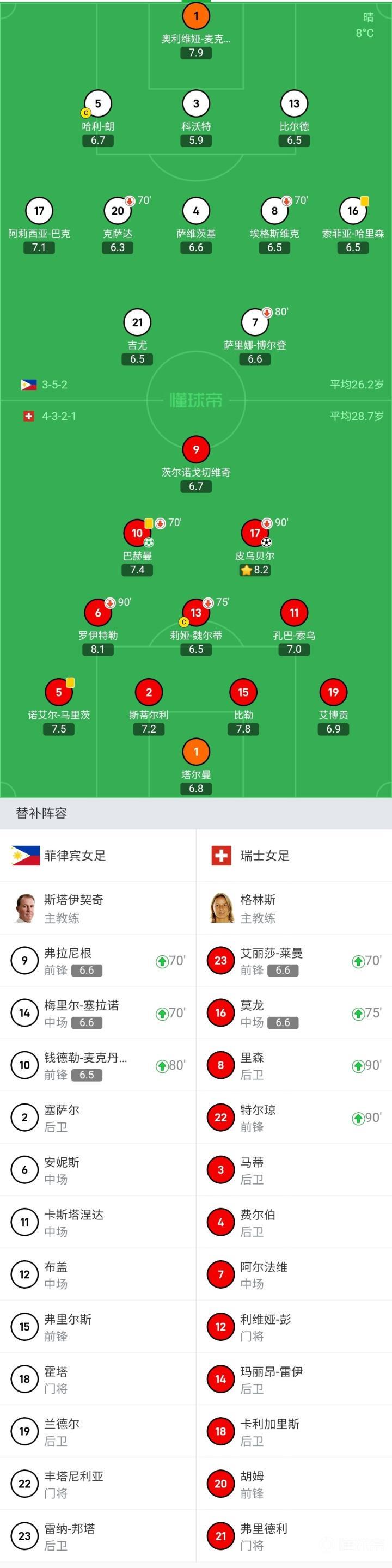 蒙牛战报|菲律宾女足0-2瑞士女足,巴赫曼、皮乌贝尔破门