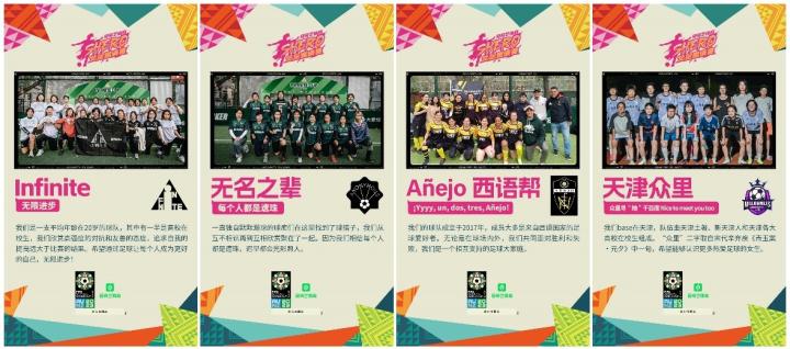 本次爱奇艺体育女足邀请赛力邀爱奇艺体育资深女性足球解说员吴桐担任现场主持,京津两地的4支女足团体参与到比赛中,她们分别是球风强硬、平均年龄在20出头的青春球队“Infinite”,老资历女足爱好者组成的球队“无名之辈”,集结西语国家资深外籍球员的球队“Añejo西语帮”,以及来自天津的新兴球队“天津众里”。