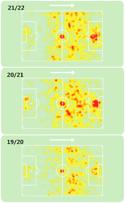 2019/2020~2021/2022赛季法比奥.阿布鲁跑动热图(进攻方向:向右)