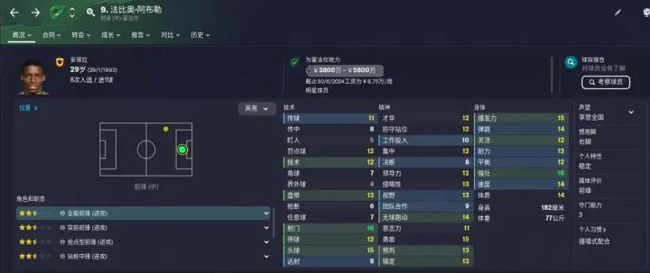 虽然并不是站桩式中锋,但同样不会执着于射门或自己单干,并不是皮球有去无回的球权黑洞。在机会并不好的时候,还是会选择与队友配合,或者把球交给位置更好的队友,而不是自己强行射门。同时,也具备平均水平之上的分球时视野。
