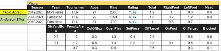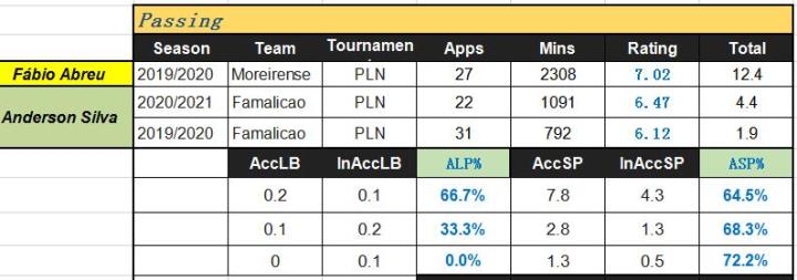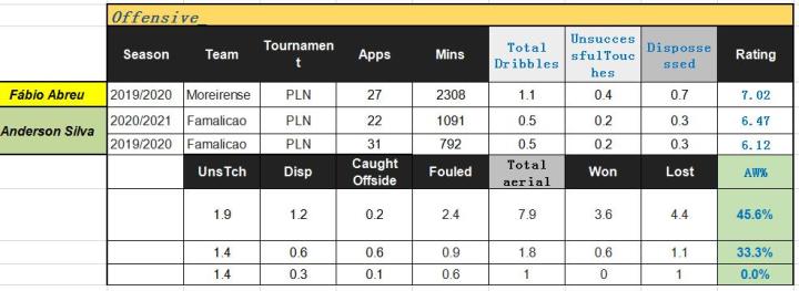 能免费提供阿布鲁在阿联酋联赛的统计数据源feier没找到,所以下边只有沙乌地和葡超的(数据)。大家应该对八字胡的安德森.席尔瓦有些印象,恰好阿布鲁与他曾有过交集,因此葡超阶段席尔瓦会作为数据对比参照一同列出。