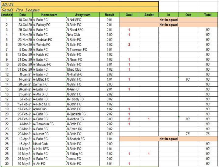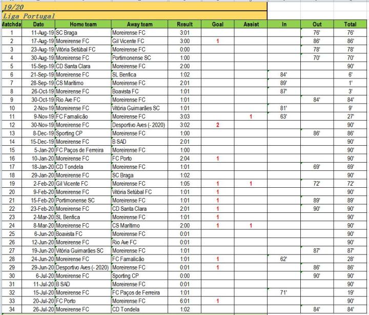 (1) 除了初到葡超和阿联酋超时有过大概8周无法保证比赛时间的适应期外,他都是所在球队当仁不让的首发前锋。并且出场时间极为稳定,虽不至于是场场被草满90分钟,但场均85分钟还是毫无压力。