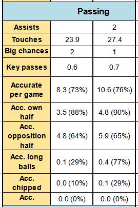 2.3传球:场均传球次数很少,触球次数大致是传球两倍……面对机会自己干是他更主要的方式。主要是短传,很少进行长传,直塞比刮奖概率低。对方半场的传球成功率不至于成为桎梏,但当然也谈不上能高人一等。总之,是一名纯粹的中锋。