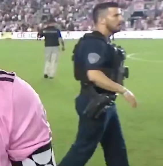 在本场梅西首秀的比赛中,持枪安保人员和警卫在场内持枪维持秩序是绝对必要的。就在一个月前,迈阿密国际还在为安保人员发愁,承诺会为梅西的到来而增强安保,本场比赛也确实人见识到了美国安保的“安全感"。