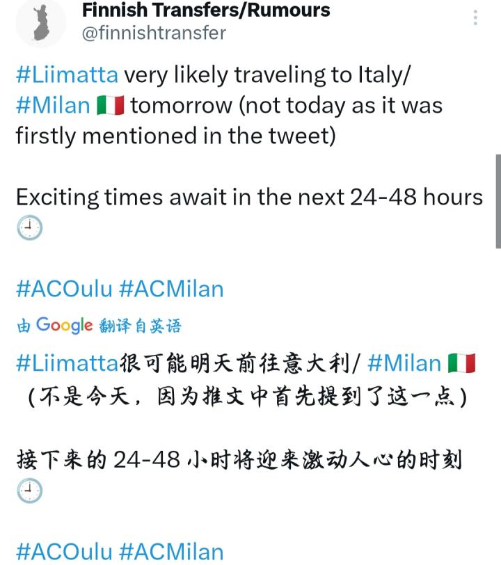 在今晚芬超比赛奥卢对阵科特卡的大名单中,奥卢的重...赫尔辛基HJK @懂球帝2023-07-22 20:02在今晚芬超比赛奥卢对阵科特卡的大名单中,奥卢的重要球员、19岁前锋奥错-利马塔并不在列,这名被媒体成为“芬兰梅西”的小将离开奥卢似乎已成现实。据媒体“芬兰转会”称,利马塔将在明天前往米兰,AC米兰对其有浓厚兴趣,转会费可达七位数! 一时间芬兰球迷炸锅了,看看接下来的发展。展开更多