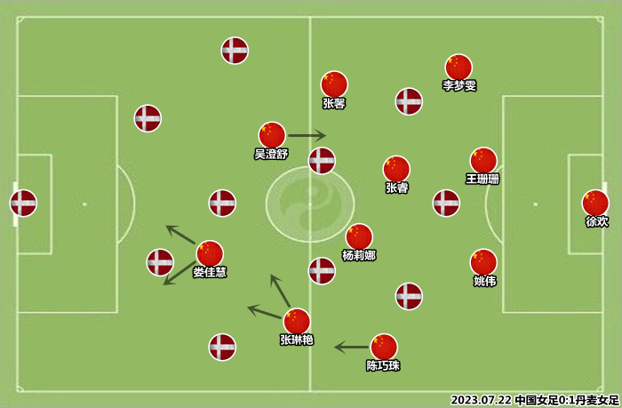 继续使用球员们熟悉的阵型,水庆霞的求变思路体现在首发人员的选择上。朱钰、王霜、沈梦雨和唐佳丽坐在替补席上,热身赛期间出镜率较高的中卫组合窦加星&汪琳琳也被留作后手,王珊珊与姚伟镇守防线中路,吴澄舒成为了娄佳慧的锋线搭档,推动反击的重任落在了张琳艳和张馨身上。世界杯开打至今,一边倒的比赛并不多,多场强弱对话皆以小比分首场,水庆霞认为中国女足有机会通过后发制人的方式,抹平与丹麦之间的实力差距。