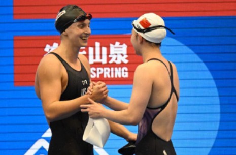 在率先结束的女子1500米自由泳决赛中,李冰洁第六泳道出场,通过后程发力连续实现超越,最终15分45秒71夺得铜牌,美国名将莱德基15分26秒27获得金牌。