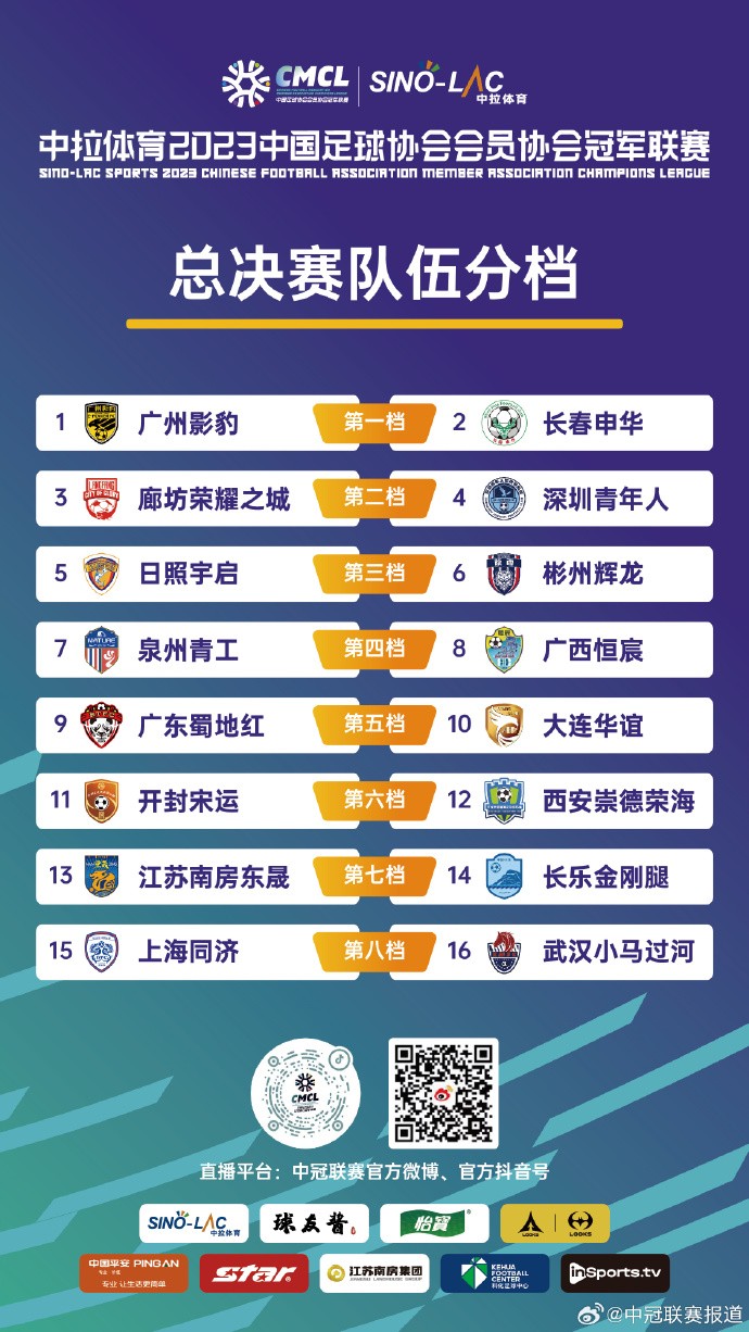 7月25日,中冠联赛官方发布了总决赛16支队伍的分档情况,其中广州影豹和长春申华进入第一档。