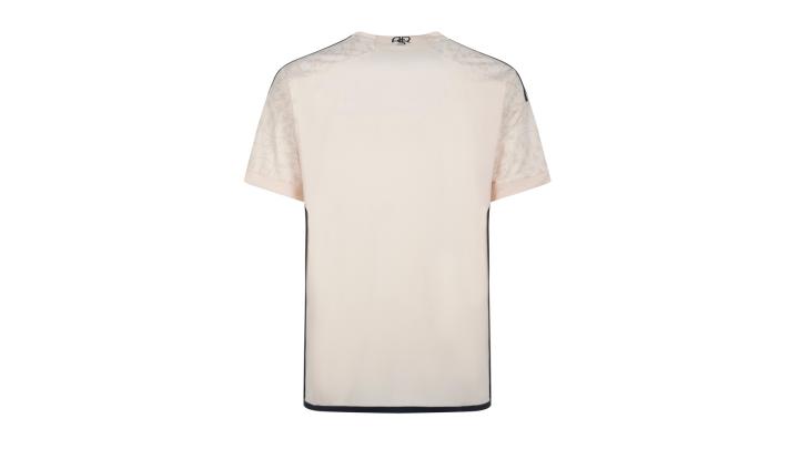 罗马新赛季客场球衣,设计灵感源于“永恒之城”——罗马标志性的纪念碑,以及石灰华材质的大理石图案。其理念,旨在赞颂罗马城中无数承载着厚重纪念意义的古典建筑遗迹,及其与现代建筑的和谐共存。 球衣配色灵感源于罗马洁白的大理石建筑材质,完美浓缩“永恒之城”的城市精神。 球衣纹案,则以莨苕叶纹装饰夹杂卷须花蕾的镶嵌画形式,通过古典建筑中的科林斯柱式风格,与罗马城建筑的核心元素交相呼应,更映照出罗马城光辉的历史。ASR字样,更清晰地展现了俱乐部历史传统的深远影响。