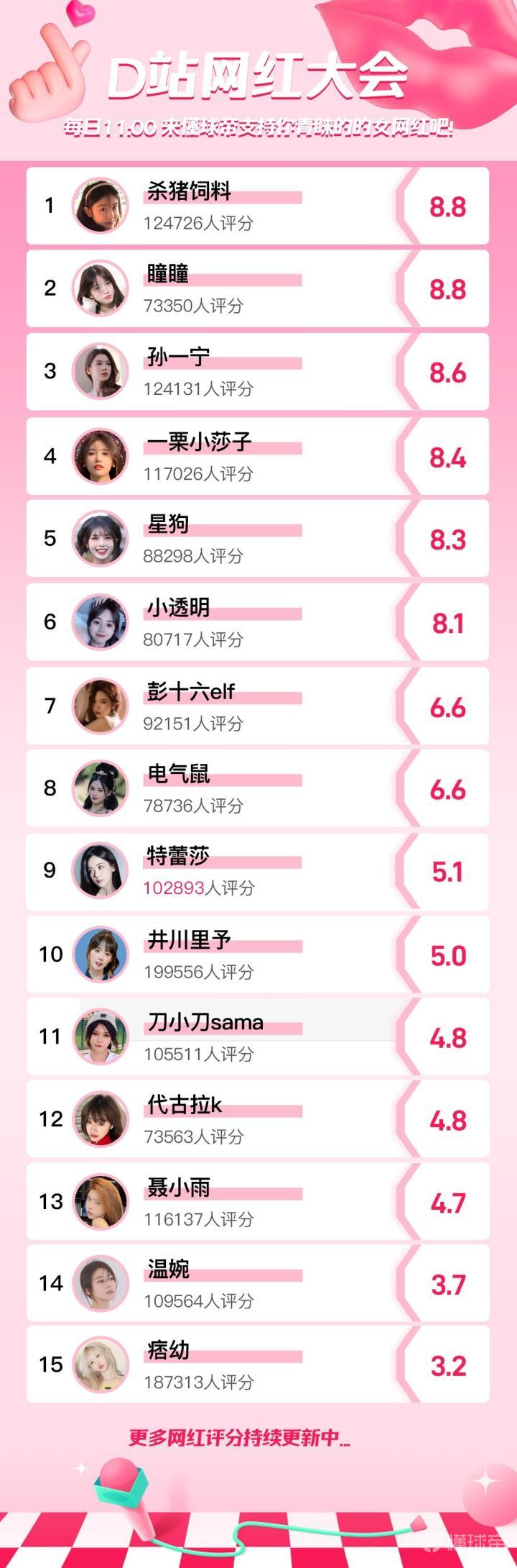 当前我懂老哥对各大网红们的喜爱值如下,谁最让你意外?