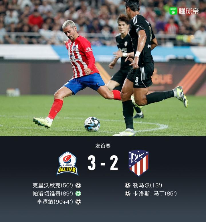 马竞最后时刻连丢2球2-3K联赛全明星,莫拉塔越位戴帽