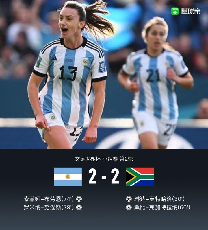蒙牛战报|阿根廷女足连扳两城2-2南非女足,布劳恩轰世界波