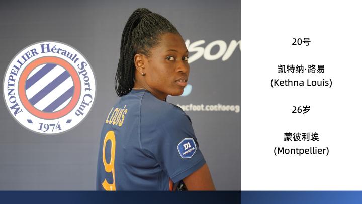 凯特纳·路易是一位速度很快,能胜任多个位置的左后卫,她还能踢更靠前的位置。她离开了勒阿弗尔(法女甲),并签约蒙彼利埃(法女甲),并说有机会与她的国家队队友蒙代西尔(Mondésir)一起踢球是她做出这一决定的重要原因,"我们有一个共同的伟大目标,那就是在今年夏天的世界杯上带领我们的国家队越走越远"。