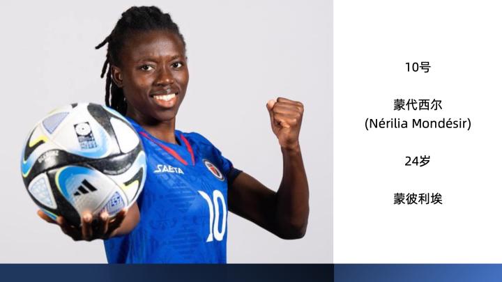 蒙代西尔是海地队长,但在少年时代,她几乎决定放弃足球而学习柔道,但如今她已成为法国足坛的一颗新星。蒙代西尔总是以身作则,她相信海地会在世界杯上证明质疑她们的人是错误的。蒙代西尔表示:“即使输球,我们也不会放弃。我们是斗士,这是我们最伟大的品质。即使对手在纸面上比我们强大,我们也要战斗到底。”