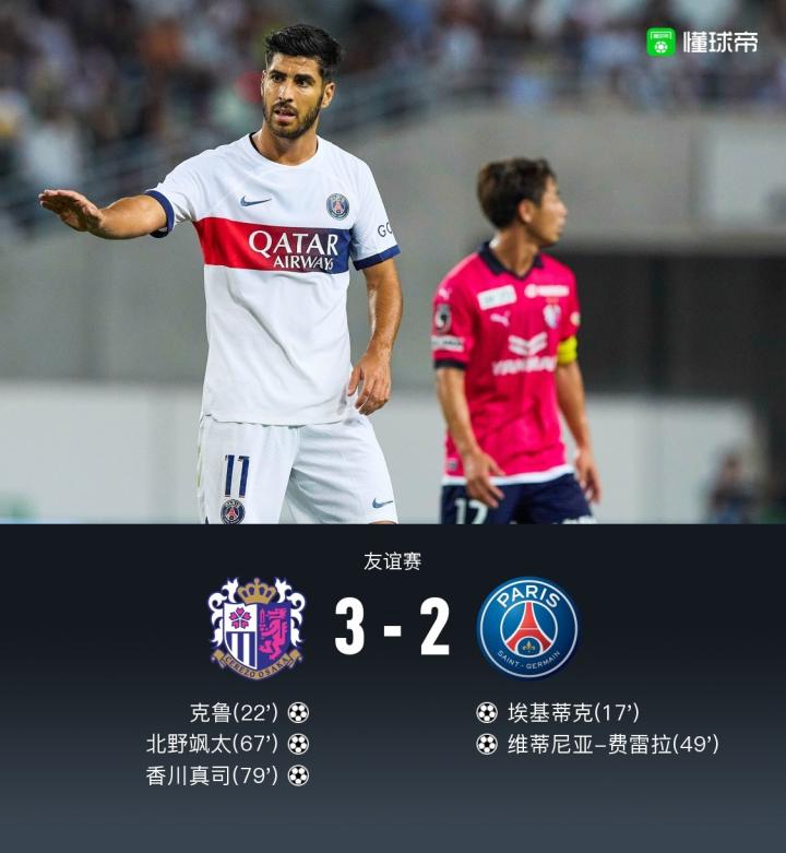 【大阪樱花3-2巴黎,克鲁、北野飒太破门,香川真司替补制胜】