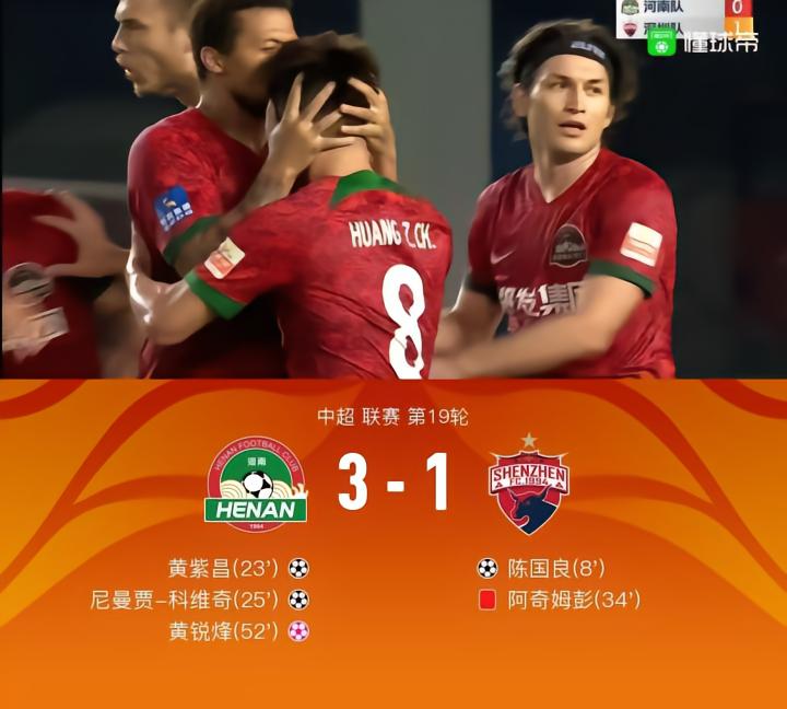 【雪佛龙丨河南3-1十人深圳,阿奇姆彭掌掴染红,双方屡次冲突】