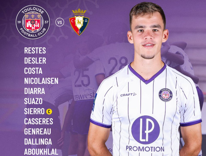 图卢兹vs奥萨苏纳:达林加回归,雷斯特首发门将