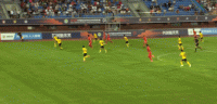 第57分钟,扳回一球,帕尔曼江头球建功,广州1-2