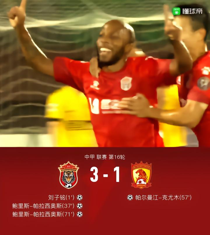 辽宁沈阳城市3-1广州,帕拉西奥斯梅开二度,刘子铭建功