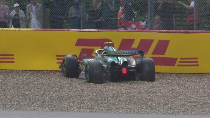第3圈,阿隆索冲出赛道并陷入砂石地,安全车释放。从回放来看,阿隆索的赛车出现了打滑的情况。要知道,今天还是阿隆索42岁的生日……