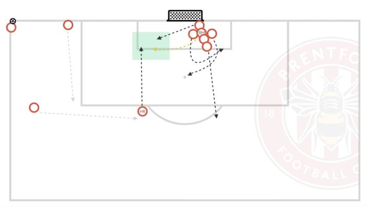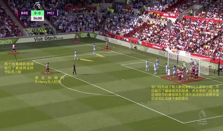 这项新的角球战术已经在本赛季引起了轰动。例如,布伦特福德采用了一套巧妙的站位,吸引对方防守球员上前围堵短角球选项,然后利用"Audibles"在角球开出前进行即时调整。球员们迅速变换位置,为队友创造了更多空间,给对手制造了意想不到的威胁。