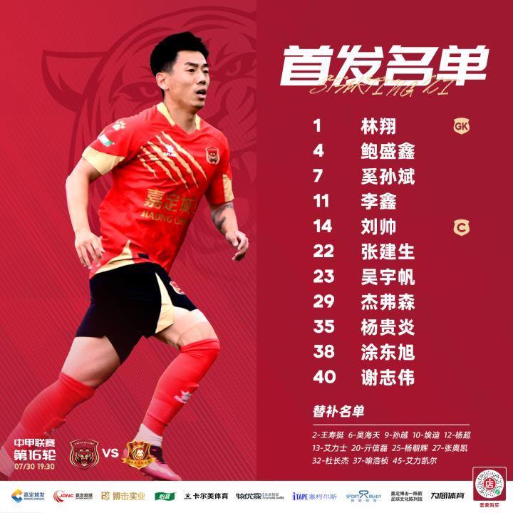 首发:1-林翔(GK)、4-鲍盛鑫、7-奚孙斌、11-李鑫、14-刘帅、22-张建生、23-吴宇帆、29-杰弗森、35-杨贵炎、38-涂东旭、40-谢志伟