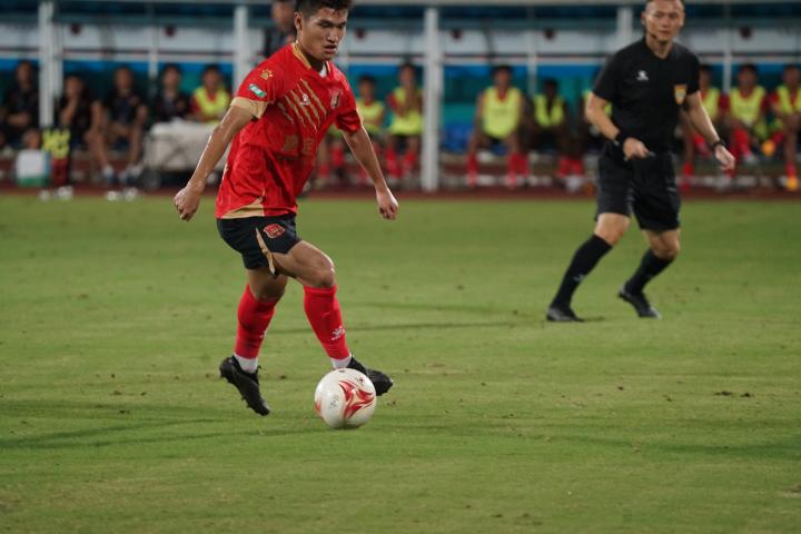 上半场,对方多次进攻被涂东旭、刘帅等防守队员成功化解,林翔高接抵挡力保球门不失;