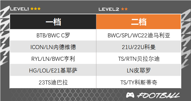○ 博格巴向来是现役中场里受欢迎度最高的那位,最近的两个赛季卡弥补了防守意识的不足,让他可以成为攻防一体的全能球员;而维埃拉更推荐22WL赛季卡,23工资的情况下强度比LN发挥更稳,正面顶防模型大,而且也具备不俗的出球和远射能力,必要时可拉到中后卫位置。此外,TS坎塞洛也可以客串后腰位置,增加球队由守转攻的速率以及出球效率,也可以插上远射。